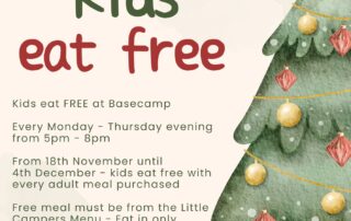 Showers/toilets cleaned twice daily. I would recommend any of the pizzas and nachos at [Basecamp] and the quiz nights/disco… Mini golf on site and various play areas and bike trails; hiring of a BBQ saved us boot space and was cheap.